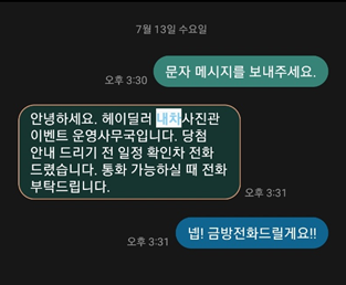 오옷 헤이딜러 내차사진관 운영사무국이라고 하셔서 칼답하고 통화했었죠!