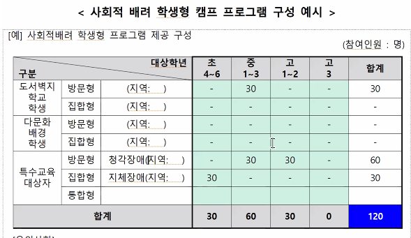 사회적 배려형은 초록색칸이 유연하기에 적은 숫자 가능하지만 공공기관형은 최고 100명이상
