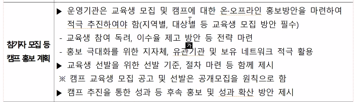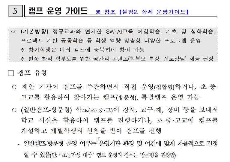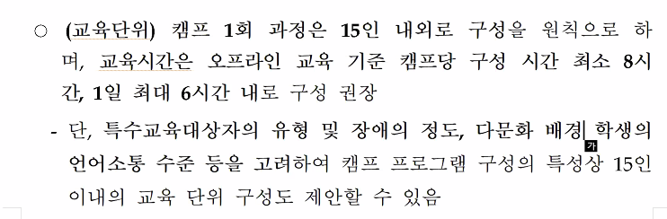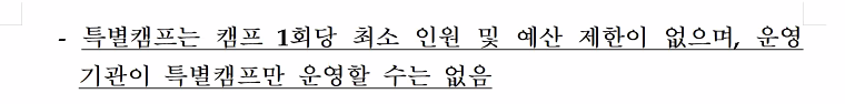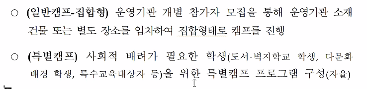 교통수단을 이용해 어디론가 모여서 진행하는 집합형 캠프 적극 장려함
