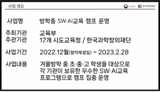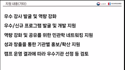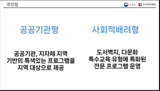 사회적 배려 계층 수혜 학생이 충분히 내용을 전달 받을 수 있도록 강사 교육 가이드라인 정립과 강의 테스트 필요.