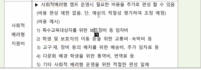 사회적 배려계층의 경우 교육장 임차비가 더욱 고려되어야함 . 휠체어가 들어가는 건물. 넓은공간 등 비용 추가 집행 가능