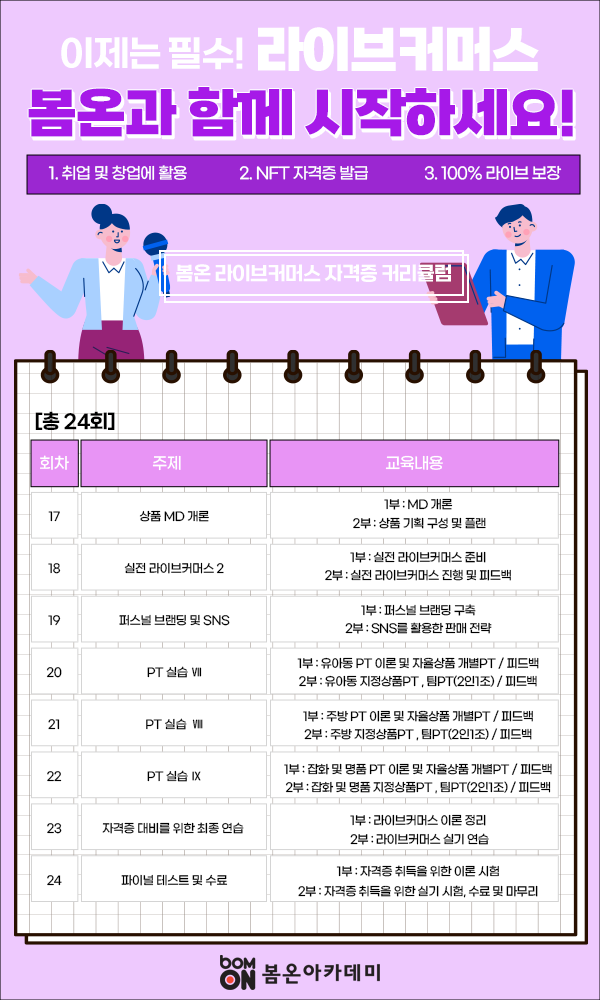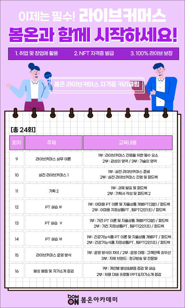 22년 6월 25일 첫 수업을 시작으로 진행하게된 봄온 라이브커머스 자격증 과정