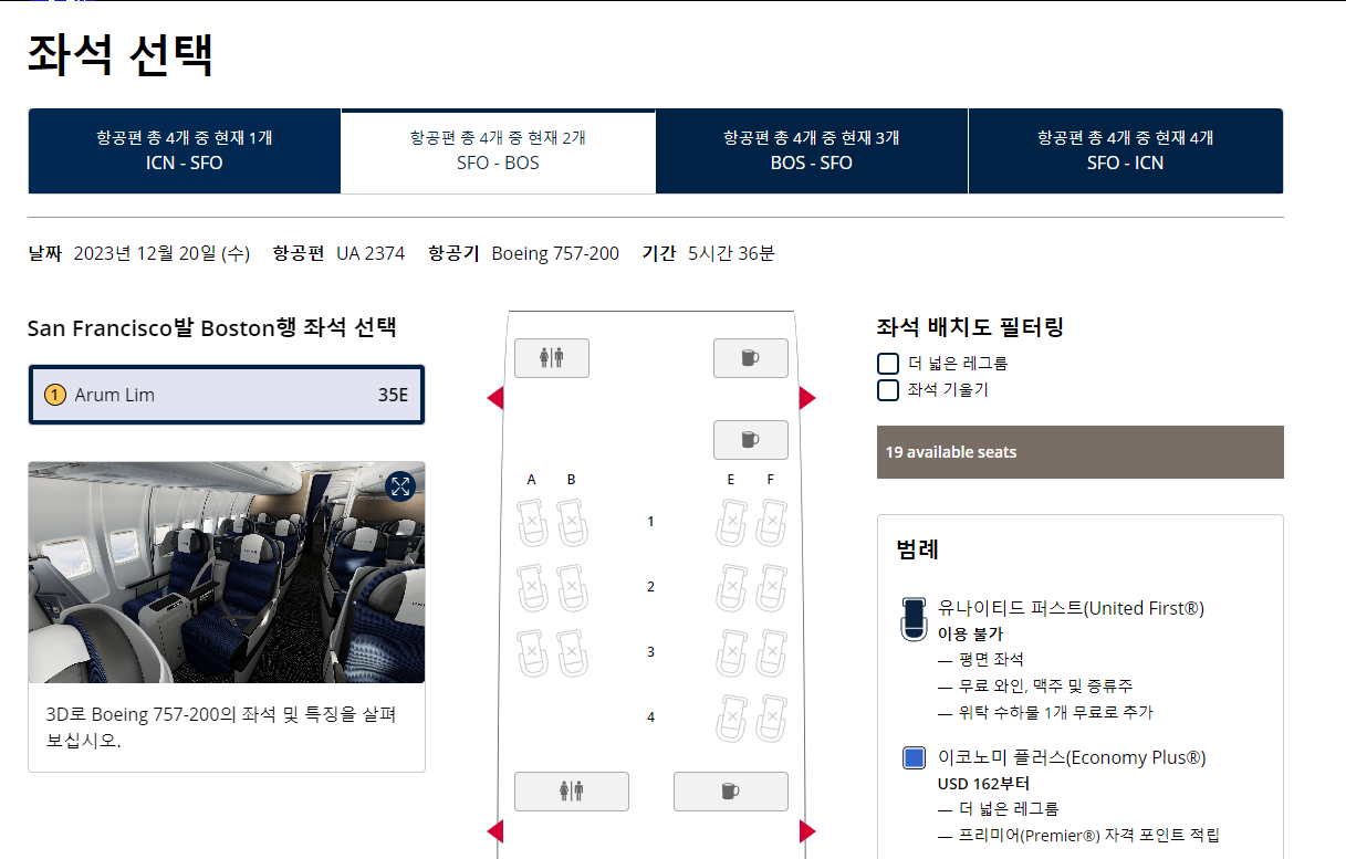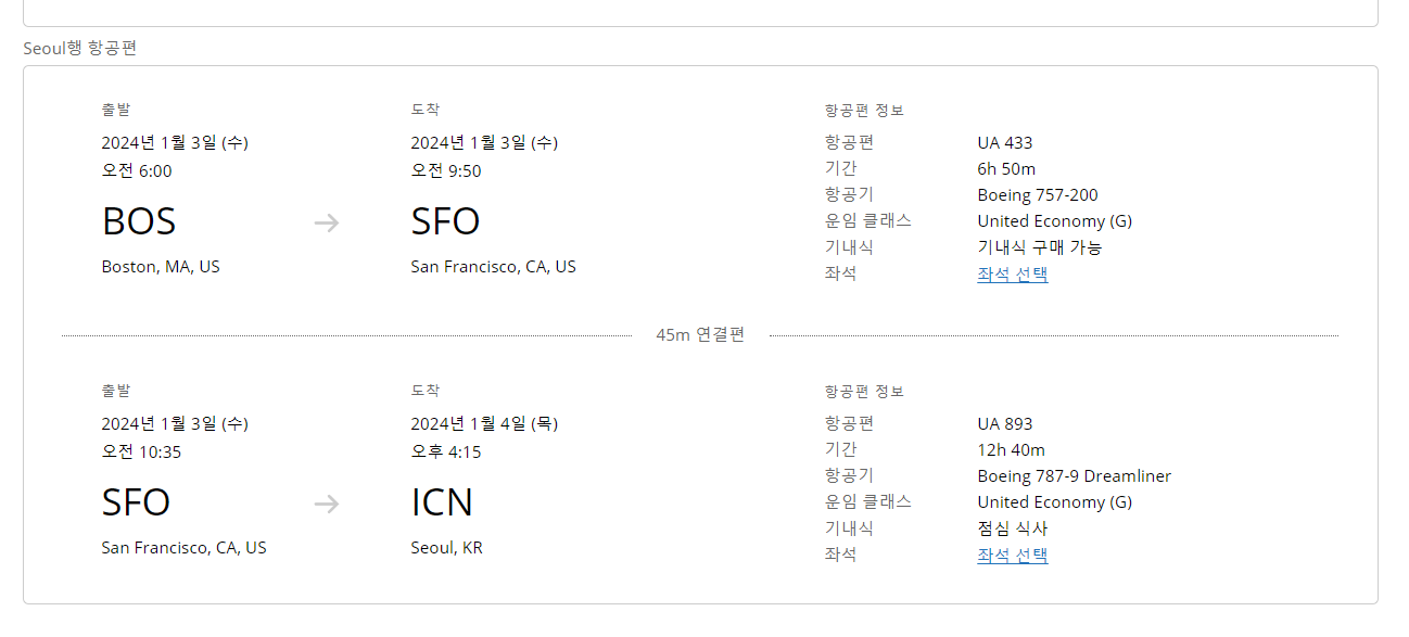 12월 20일 (수) ~ 1월 3일 (수) 약 2주간 동생이 지내는 보스톤에 가려고 항공권을 알아보던 중