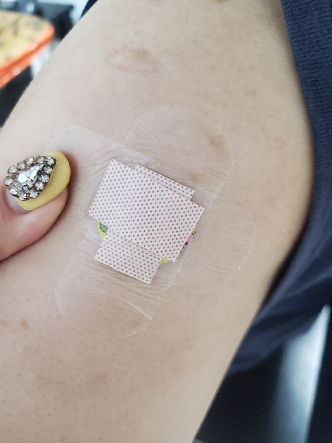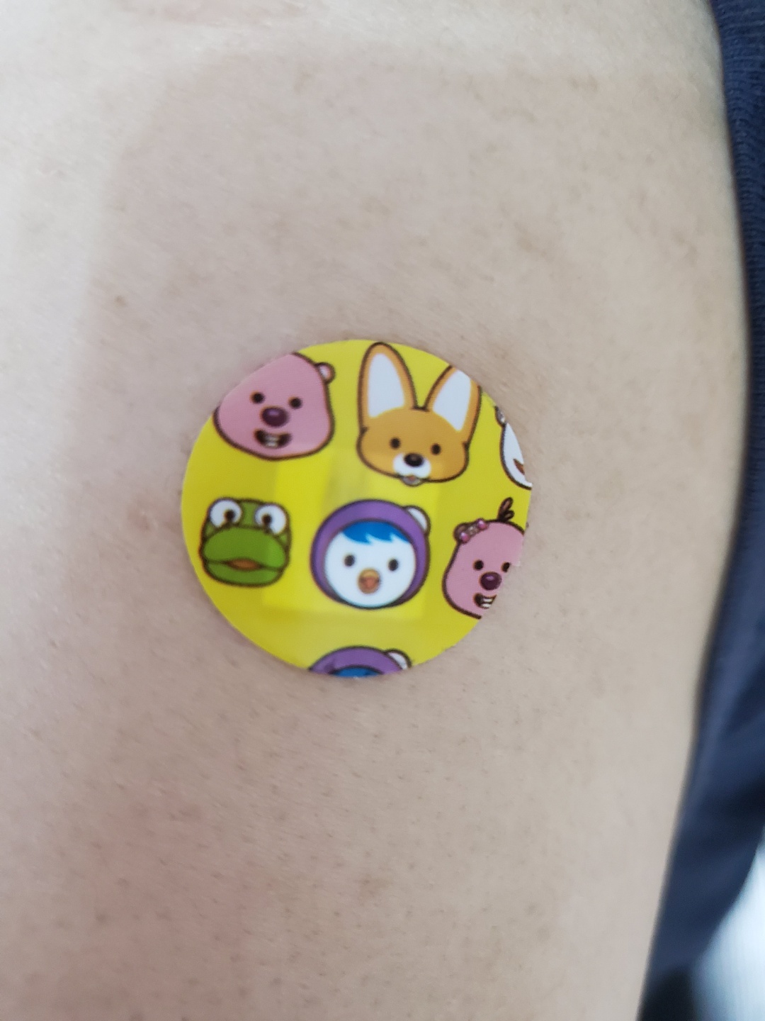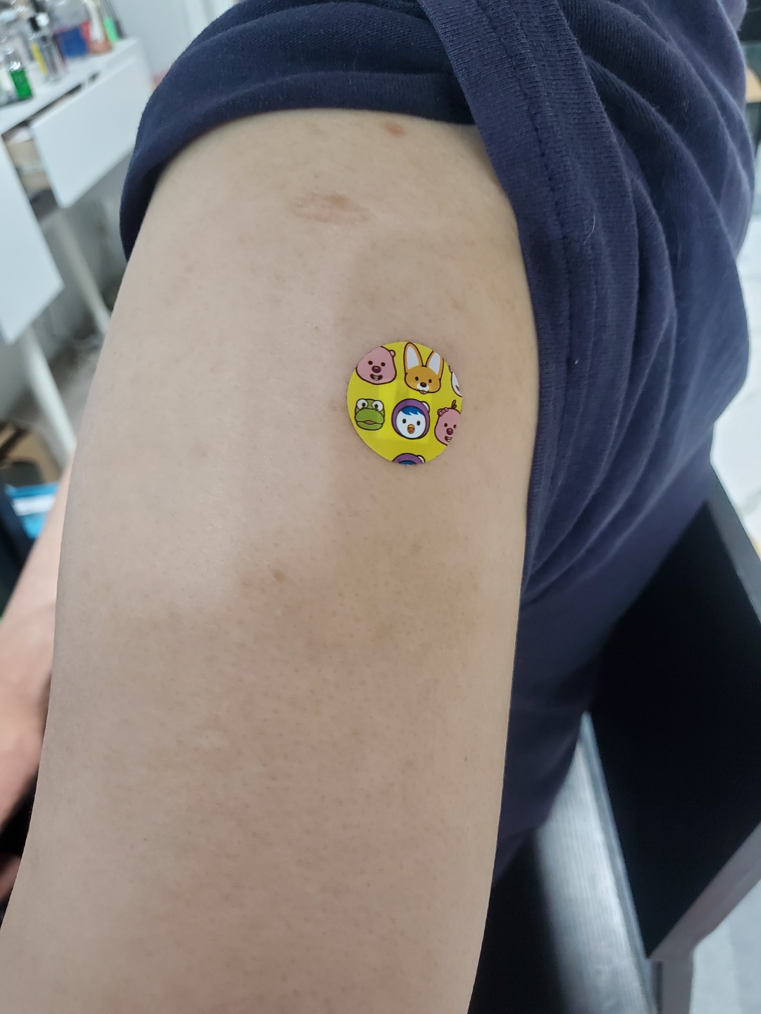 얀센 맞은곳에 뽀로로스티커 붙여줘서 떼면안된다고 방수밴드붙이고 샤워함.